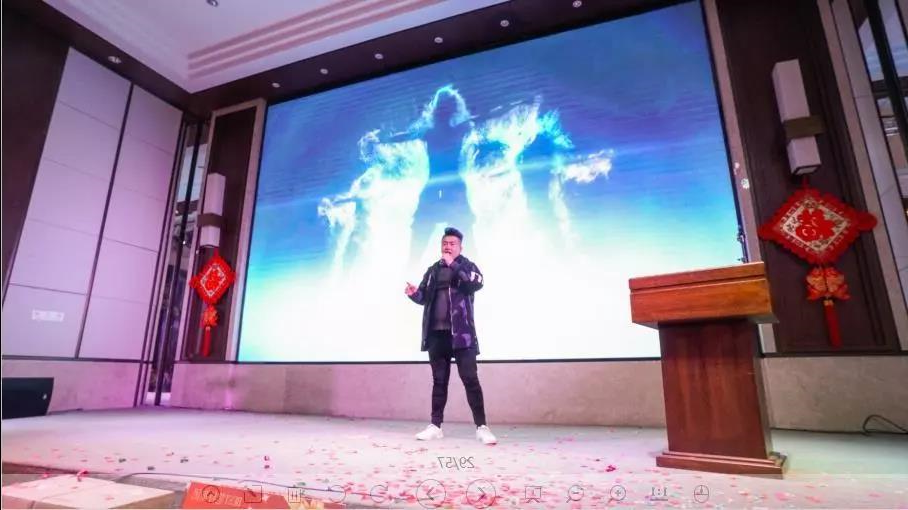 在掌声和尖叫声中,笔特集团创始人杨金栋先生发表致辞。董事长分别对银河集团直营 展示公司以及笔特模型公司2018年的成绩表示了肯定与认可,并激励伙伴们持续行动,奋勇拼搏,2019继续加油!
