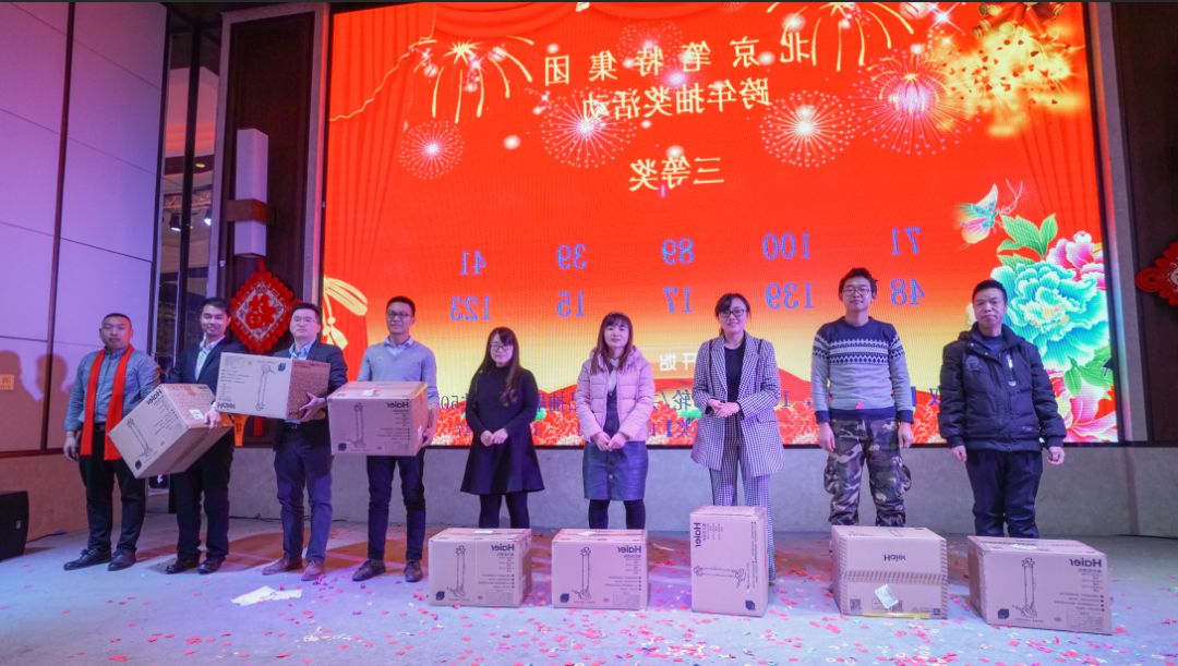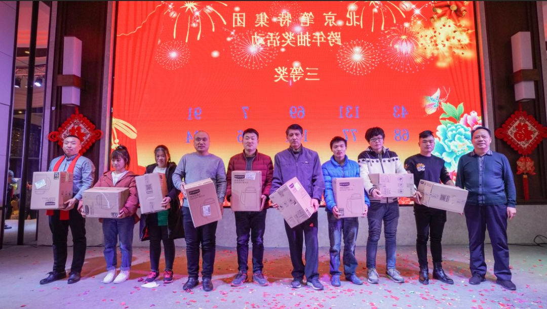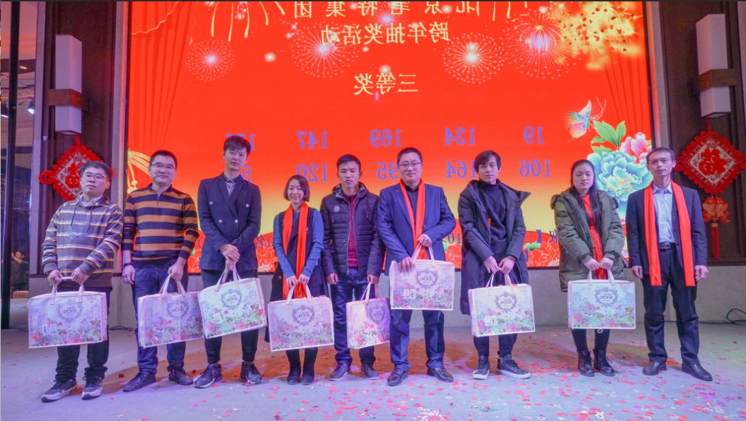 最后,由董事长与各集团领导上台致祝酒词,放祝酒歌,在大家雷鸣般的掌声当中,晚宴正式开始,也顺带引出了最后一个也是最激动人心的环节:抽奖。